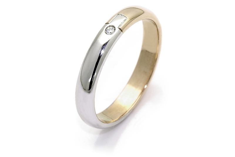Fede Nuziale in Oro Bicolore Gialla e Bianca Mod. Naxos mm. 3,9